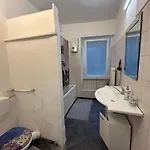This apartment is equipped with a bathroom that features hairdryers.